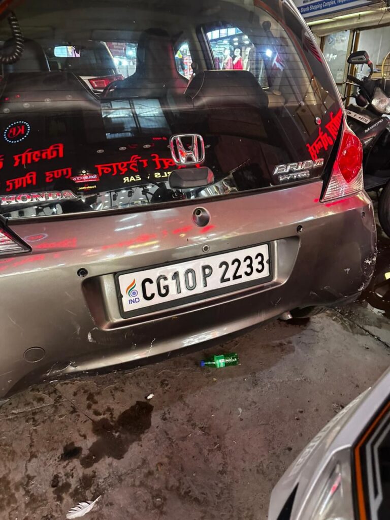 बिलासपुर तेलीपारा स्थित ‘नरेश बाजार’ में शनिवार को एक दिल दहला देने वाला हादसा घटित हुआ। था एक अनियंत्रित कार लापरवाही पूर्वक बैक करते हुए सीधे ‘वर्षा फैशन’ नामक कपड़ा शोरूम के भीतर जा घुसी। इस दुर्घटना में शोरूम संचालिका के पति और शहर के प्रतिष्ठित व्यापारी विजय सबनानी गंभीर रूप से घायल हुआ था उन्हें तत्काल उपचार हेतु एलाईट अस्पताल मे भर्ती किया गया था जाह परिजनो को गुप्त सुचना मिली की अस्पताल में मरीज की गलत रिपोट बनाई जाऐगी सुचना मिलते ही परिजनो ने
