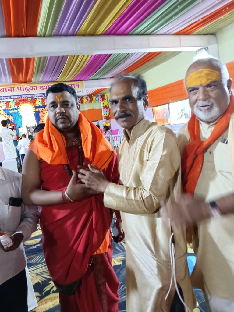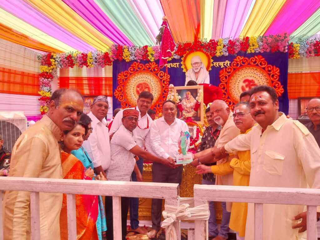श्री साईं बाबा की मूल चरण पादुका के साथ शिरडी से पधारे समस्त पदाधिकारियों एवं कार्यकर्ताओं को स्नेह पूर्वक स्मृति चिन्ह भेंट कर सम्मानित किया गया