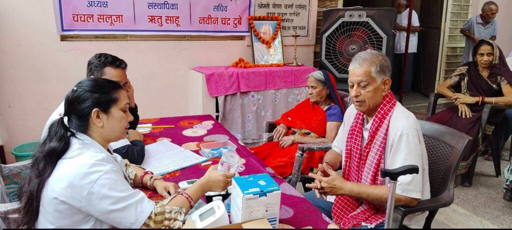 स्वास्थ्य परीक्षण के बाद बुजुर्गों को दवा, चश्मा, दवाइयां की गई वितरित
