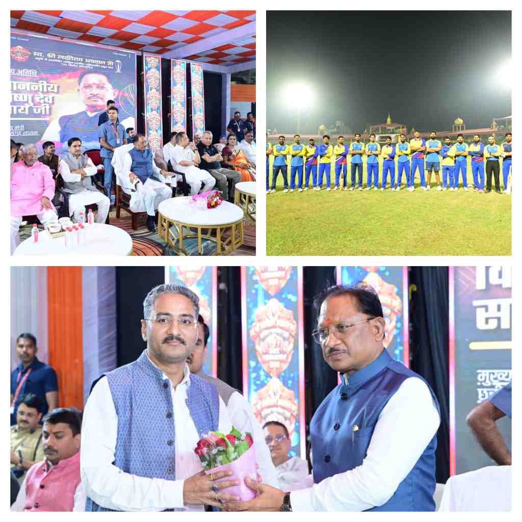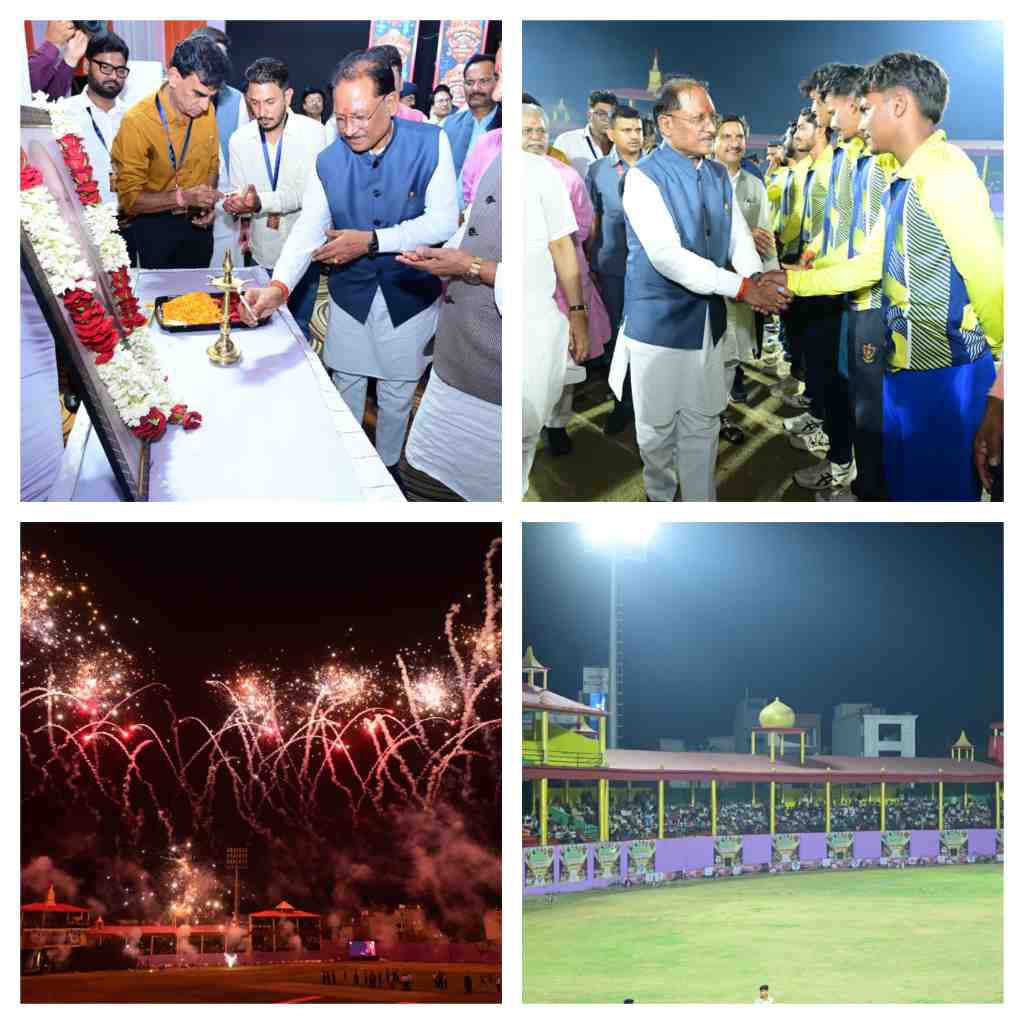 बिलासपुर, 29 मार्च 2026/मुख्यमंत्री श्री विष्णु देव साय आज राजा रघुराज सिंह स्टेडियम में स्वर्गीय लखीराम अग्रवाल जी की स्मृति में आयोजित टी-20 ड्यूस बॉल क्रिकेट प्रतियोगिता में शामिल हुए। उन्होंने खिलाड़ियों से परिचय लेकर उनका हौसला बढ़ाया और जिले के खेल प्रेमियों को बधाई दी। प्रतियोगिता में देश के 8 राज्यों की टीमों ने भाग लिया। जिसमें कई खिलाड़ी रणजी ट्रॉफी तथा आईपीएल जैसे बड़े मंचों पर अपना हुनर दिखा चुके हैं। समापन मैच में छत्तीसगढ़ क्रिकेट संघ़ और खड़गपुर के बीच फाइनल मैच खेला गया।