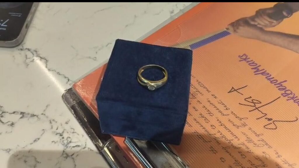 अंगूठी का विवरण: 5.620 ग्राम (14 कैरेट सोना) और 0.46 सेंट हीरा।