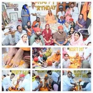 विधि विधान के साथ पंडित सोनू महाराज जी के द्वारा पूजा पाठ कराई गई गुरु जी को तिलक लगाया गया फूलों की माला पहनाई गई वह बधाई दी गई , शुभकामनाएं दी गई बड़ी संख्या में रायपुर के पूज्य सिंधी पंचायतों के सामाजिक संस्थाओं के अध्यक्ष पदाधिकारी नेता अभिनेता पहुंचे वह गुरु जी को” अवतरण दिवस की बधाई दी शुभकामनाएं दी व उनका स्वागत सत्कार किया गया गुरुजी ने अपने आशीष वचनों में आए हुए सभी भक्तजनों को साध संगत को आशीर्वाद दिया और कहा माता रानी की कृपा कुलदेवीहिंगलाज माता की कृपा इष्ट देव भगवान भोलेनाथ की कृपा आराध्य देव भगवान झूलेलाल की कृपा सदा आप पर बनी रहे सभी खुश रहे दुख दर्द आप सभी के दूर रहें