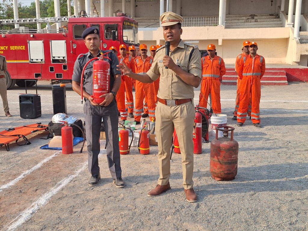 अग्नि शमन सेवा सप्ताह 14 अप्रैल से एक सप्ताह हेतु मनाया जा रहा है, उप पुलिस महानिरीक्षक/ वरिष्ठ पुलिस अधीक्षक श्री रजनेश सिंह आईपीएस के निर्देशन और मार्गदर्शन में पुलिस लाइन और विभिन्न जगहों पर अग्निशमन सेवा, एसडीआरएफ और पुलिस बिलासपुर द्वारा प्रदर्शनी, कार्यशाला, और प्रशिक्षण आयोजित किया जा रहा है, आज इसी क्रम में बिलासपुर पुलिस के राजपत्रित अधिकारी थाना चौकी प्रभारी पुलिस लाइन के अधिकारी जवानों को प्रशिक्षण दिया गया क्योंकि ऐसे घटना दुर्घटना होने पर पुलिस के अधिकारी जवान पहले पहुँच कर भीड़ और स्थिति को नियत्रिंत करते हैं, और आवश्यक सावधानी और सुरक्षा उपाय करते हैं, भीड़ का हिस्सा न बनकर पूरा नियंत्रण रखते हुए सुरक्षा के उपाय करते हुए भीड़ को नियंत्रित करते हुए जान माल को सुरक्षित करने हेतु प्रयास करे । जब तक एसडीआरएफ अग्निशमन टीम के पहुंचने पर उनको अपनी कार्य करने हेतु उचित व्यवस्था उपलब्ध करायी जाये, आगजनि की घटनाओं को आग के प्रकार A ठोस ,B तरल/ द्रव, C गैस और अन्य जैसे बिजली आदि प्रकार हेतु अग्निशमन यंत्र के उचित प्रयोग आग के प्रकार के अनुसार उपलब्ध है की नहीं । DCP, पानी, dry co2, फोम जैसे अग्निशमन यंत्र उपलब्ध हो- ताकि उचित उपकरण का उपयोग किया जा सके और आग पर नियंत्रण पाया जा सके। घरेलू गैस सिलेंडर में आग लगने पर अग्निशमन यंत्र, हाँथ, प्लास्टिक बाल्टी, कंबल से आग पर क़ाबू पाने का अभ्यास कराया गया। घर, भवन, दुकान और संयंत्र में आग लगने पर अग्निरोधक ड्रेस पहनकर जान माल को सुरक्षित कर आग पर नियंत्रण हेतु प्रशिक्षण दिया गया ।