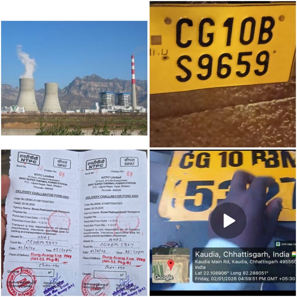एनटीपीसी सीपत के डेम मे किस अधिकारी के संरक्षण मे चल रहा करोडो का घोटाला एक राखड़ वाहन मे अनेक नेम प्लेट और कट रहा फर्जी बिल्टी
