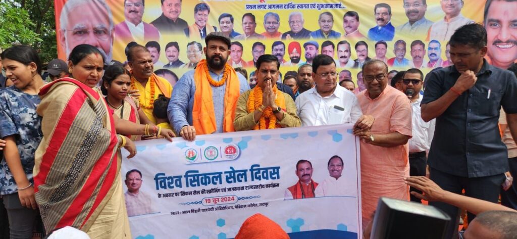 बिलासपुर, 19 जून 2024/केन्द्रीय शहरी विकास राज्य मंत्री श्री तोखन साहू ने आज विश्व सिकल सेल दिवस के अवसर पर नगर पंचायत कोटा मंे सिकल सेल जेनेटिक कार्ड हितग्राहियों को बांटे। इस अवसर पर उन्होंने कहा कि सिकलसेल रोग के लक्षण, जांच एवं उपचार के लिए भारत सरकार के निर्देशानुसार सिकलसेल दिवस मनाया जा रहा है। कार्यक्रम में श्री रामदेव कुमावत, श्री प्रबल प्रताप सिंह जूदेव सहित अन्य लोग उपस्थित थे।