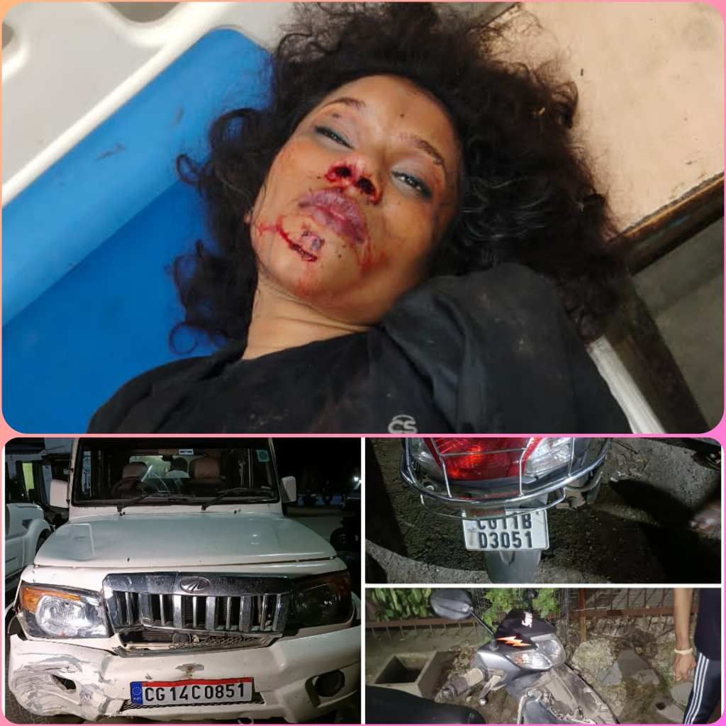 बिलासपुर -महिला थाना के पास शुक्रवार की रात लगभग 10.20 के पास 2 स्कूटी सवार (CG11BD3051) युवतियों को बोलरो क्रमांक – (CG14C0851) ने जोरदार टक्कर मार दी