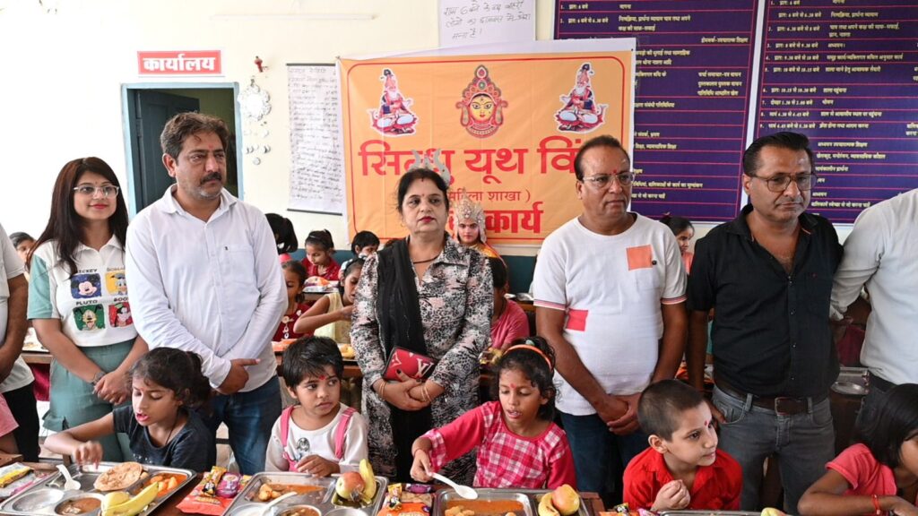 रीवा 10 अक्टूबर। मॉ भगवती की आराधना पर्व शारदेय नवरात्रि के अवसर पर सिन्धु यूथ विंग द्वारा घोघर रीवा स्थित मूक बधिर एवं नेत्रहीन कन्या छात्रावास में महाअष्टमी के पावन अवसर पर छात्रावास की कन्याओं का विधिवत मंत्रोच्चार के साथ पूजन कर उपहार भेट किये गये। मातृशक्ति नगर पुलिस अधीक्षक शिवाली तिवारी व मशहूर भजन गायिक लता लालवानी (दिल्ली) द्वारा छात्रावास में मातारानी की प्रतिमा के समक्ष पूजन अर्चन कर वहा पर निवासरत कन्याओं को देवी स्वरूप मानकर उनके पैर धोकर, तिलक लगाकर सिर में ओढनी(चुनरी) पहनाकर पूजन किया गया तथा कन्याओं को रूचिकर भोजन कराया गया। उपहार स्वरूप मातृशक्ति द्वारा कन्याओं को फल, मिष्ठान एवं उपयोगी सामग्री प्रदान की गई। इस अवसर पर नगर पुलिस अधीक्षक शिवाली तिवारी ने बालिकाओं एवं महिलाओं में जागरूकता लाने के उद्देश्य से चलाये जा रहे अभिमनयु ऑपरेशन के बारें में जानकारी प्रदान की। कार्यक्रम में सिटीकोतवाली के टी.आई. अरविन्द सिंह राठौर अपने समस्त स्टाफ के साथ, सिन्धु यूथ विंग महिला शाखा की मातृशक्तियां एवं सिन्धु यूथ विंग के सदस्यगण उपस्थित रहे।