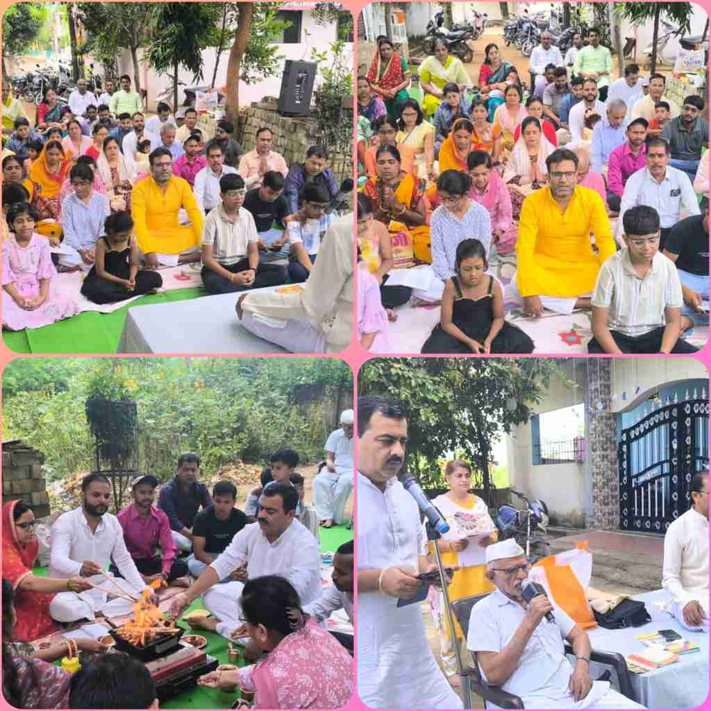 जिसमें सर्वप्रथम यज्ञ का कार्य आचार्य जयदेव शास्त्री जी के ब्रह्मत्व में प्रारंभ हुआ। यजमान के रूप में गुप्ता परिवार ने आहुतियां दी। यज्ञ के उपरांत वैदिक सत्संग का आयोजन किया गया जिसमें सर्वप्रथम आर्य समाज के संरक्षक श्री रूपचंद जीवनानी जी ने और आर्या संध्या शर्मा ने एक – एक भजन प्रस्तुत किया। तत्पश्चात यज्ञ ब्रह्मा आचार्य जयदेव जी ने गुप्ता परिवार को आशीर्वाद दिया।और सभी आर्यों को और अन्य उपस्थित जनों को संबोधित करते हुए नवसस्येष्टि अर्थात् दीपावली हम क्यों मनाते हैं और यह कब से प्रारंभ हुआ इसके विषय में बताते हुए कहा कि हमारा कोई भी पर्व निरर्थक नहीं होता उसके पीछे निश्चित ही कोई ना कोई विज्ञान होता है ।शारदीय नवसस्येष्टि पर्व प्राचीन काल से चला आ रहा एक विशेष त्यौहार है । वर्षा की समाप्ति के पश्चात किसान की फसल खेत में पककर तैयार हो जाती है और वर्षा के कारण कीट पतंग का प्रकोप भी कम हो जाता है और इसलिए घर और आसपास के वातावरण को स्वच्छ करके किसान अपनी प्रसन्नता को नवसस्येष्टि पर्व के रूप में व्यक्त करता है। ईश्वर का धन्यवाद करता है जिसकी कृपा से धन-धान्य की प्राप्ति हुई है। किंतु त्रेता युग में इस पर्व को श्री रामचंद्र जी के आगमन को दीपोत्सव के रूप में मनाए जाने की परंपरा प्रारंभ हो गई। तब से दीपावली हुआ,अब दिवाली बोलतें हैं जिसमें जुवां खेलकर घरों को दिवाला बना रहे हैं