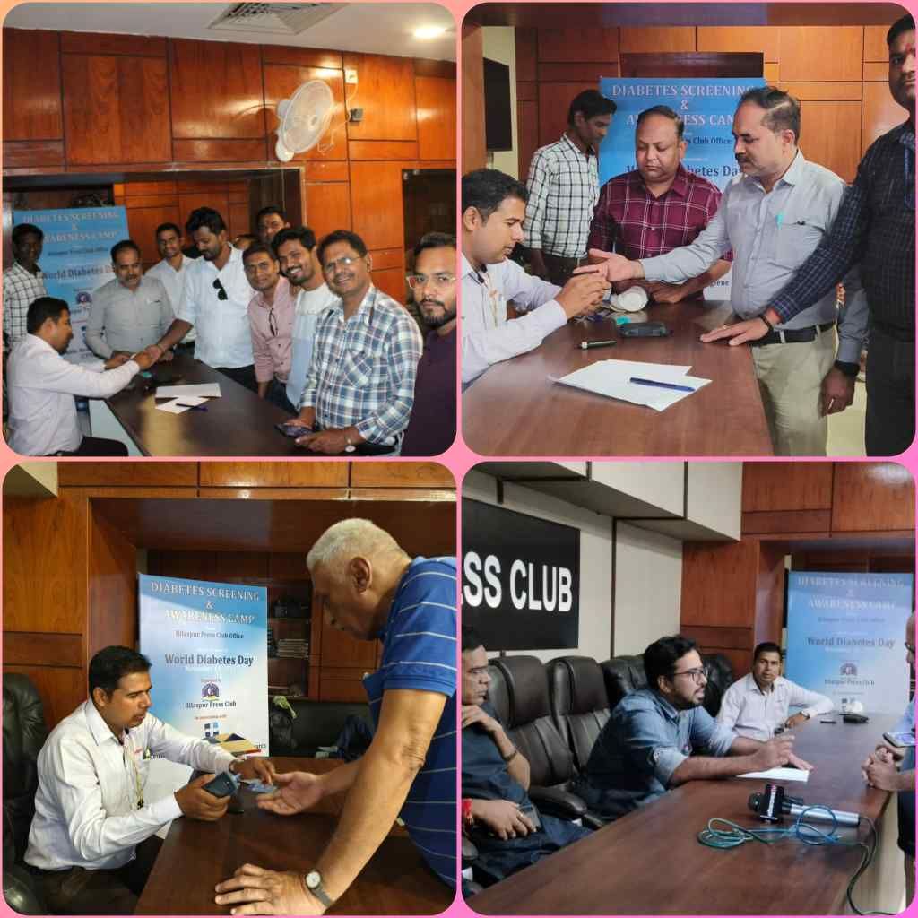 बिलासपुर: बिलासपुर प्रेस क्लब ने विश्व मधुमेह दिवस के अवसर पर सेंटर फॉर पब्लिक हेल्थ एंड हाइजीन रिसर्च के सहयोग से डायबिटीज स्क्रीनिंग और जागरूकता शिविर का आयोजन किया। इस शिविर का मुख्य उद्देश्य पत्रकारों में मधुमेह के प्रति जागरूकता बढ़ाना और उनकी सेहत की जांच करना था। शिविर में 70 से अधिक प्रेस क्लब के सदस्यों ने अपनी जांच कराई और मधुमेह से संबंधित जानकारी प्राप्त की। इस दौरान बिलासपुर प्रेस क्लब अध्यक्ष इरशाद अली,उपाध्यक्ष संजीव पांडेय,सचिव दिलीप यादव, कोषाध्यक्ष प्रतीक वासनिक, सह सचिव दिलीप जगवानी और कार्यकारिणी सदस्य गोपी डे के अलावा बड़ी संख्या में प्रेस क्लब मेंबर मौजूद रहे।