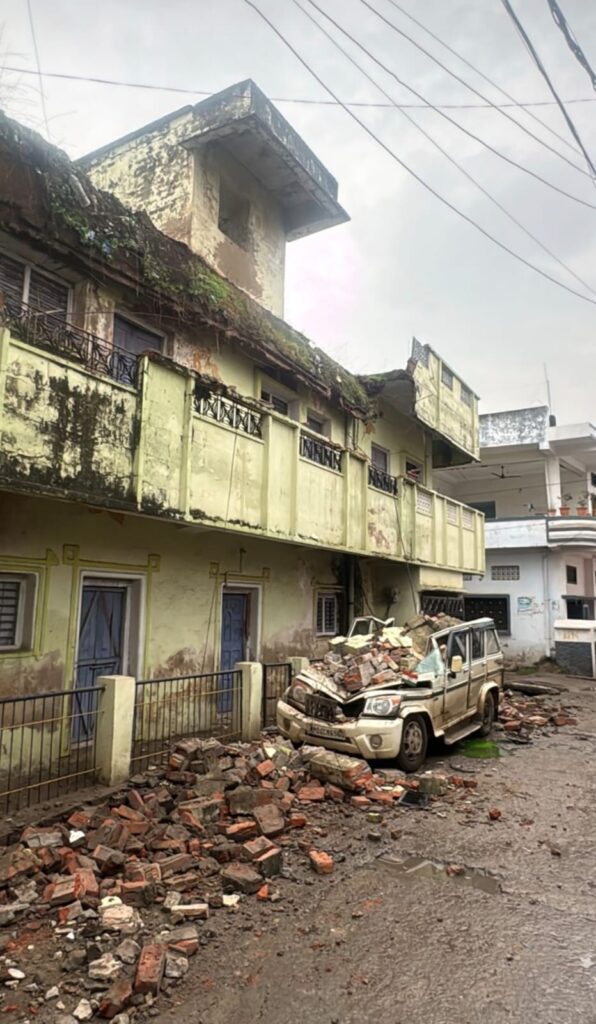 रीवा नगर निगम की लापरवाही का दुष्परिणाम, जर्जर भवन गिरने से वाहन क्षतिग्रस्त